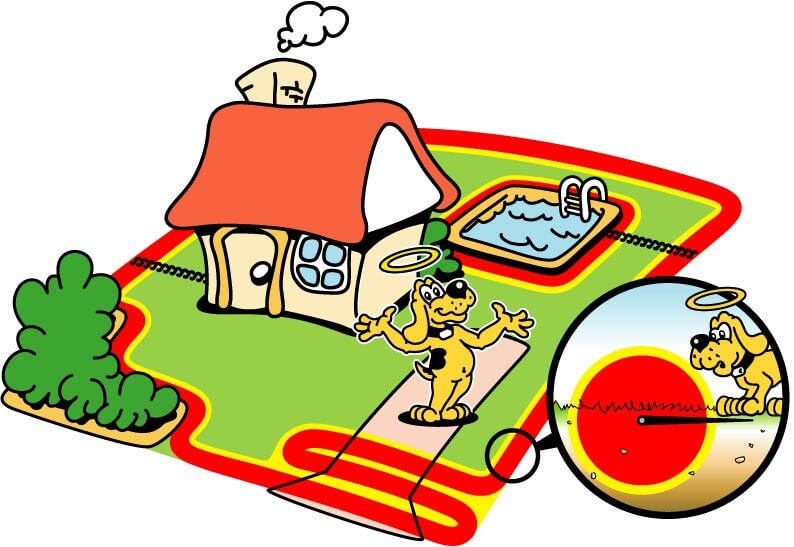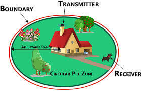 The wireless dog fence involves installing the transmitter into centre of the property. From central transmitter a circular signal creates the no go zone around the garden. Sounds simple enough, however, the downside is that property owner needs to consider several major facts when looking into wireless dog fencing.